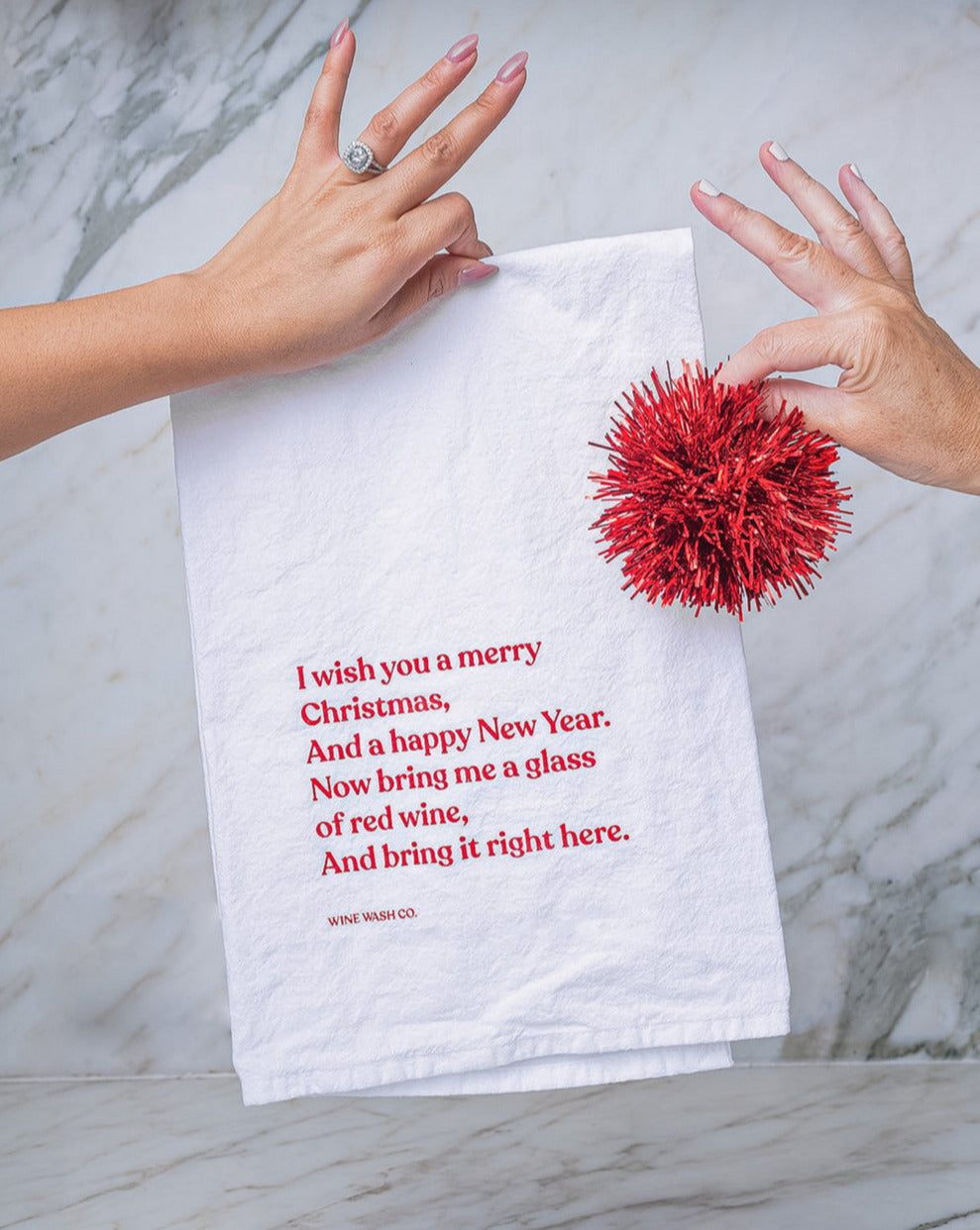 The perfect addition to any wine lover's kitchen for the holiday season. And a fun play on the holiday song "We Wish You a Merry Christmas." I think we'd all rather a glass of red wine over some figgy pudding!!