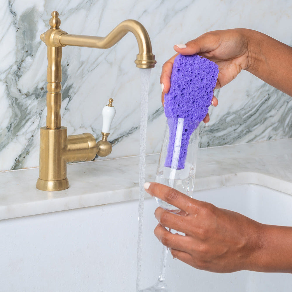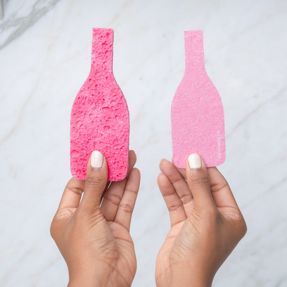 Meet our biodegradable, all-natural household cleaning sponges. Just add water (or wine!) and watch these wine-shaped kitchen sponges expand to full size.